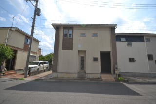 西側から。南西向きで建ち、日当たり良好。お部屋は全て角部屋で、内部も明るいです。
