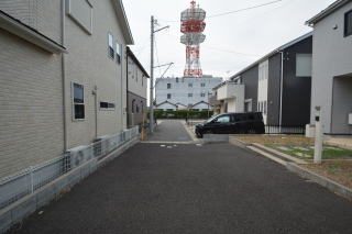 駐車スペースは広く舗装され、車は並列で停められて便利です。北西側には、幅約4mの前面道路。