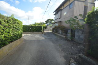 前面道路 一番奥に物件。手前は農家集落が密集している地域です。
