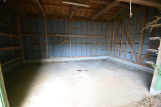 納屋内部はとても広く、屋根付き駐車場としても良さそうです。