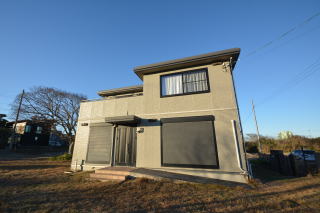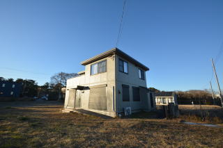 西側から。敷地は、東西の二面の道路に面しています。