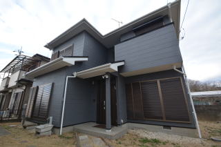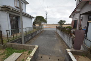 南西側・玄関前。入口から玄関までは石が敷かれ、足元は安心です。
