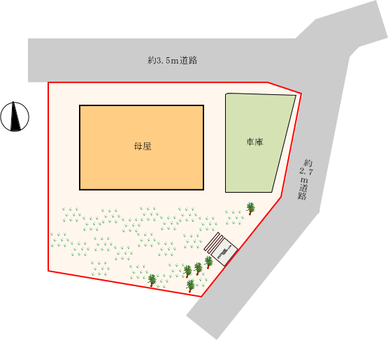 東側約2.7m道路 南方向に傾斜しています。