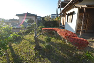南側・お庭。お庭は綺麗に整えられ、素敵なお庭が造れそうです。