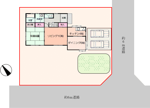 南西・約6m道路。みなみ薬局まで徒歩約6分、スーパーおおたやまで車約13分で