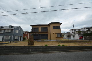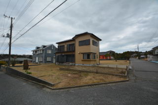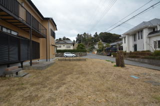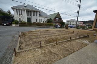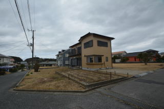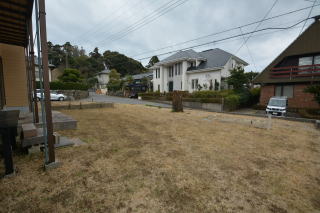 南西側お庭は、綺麗に整えられています。前面は道路で開放的ですね。