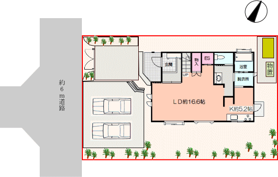 西・約6m道路。成田駅周辺には、イオンモールやドン・キホーテなど生活施設が充実し、生活は便利です。