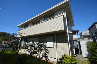 南東側から。物件は南向きで建ち、お部屋は全て角部屋になっており、日当たりも良好です。