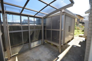 北東側の角には、物置などがあります。ここに自転車なども停められそうですね。
