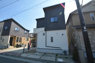 南東側から。リビングは南側に面し、お部屋も全て角部屋になっており、開放的です。
