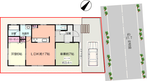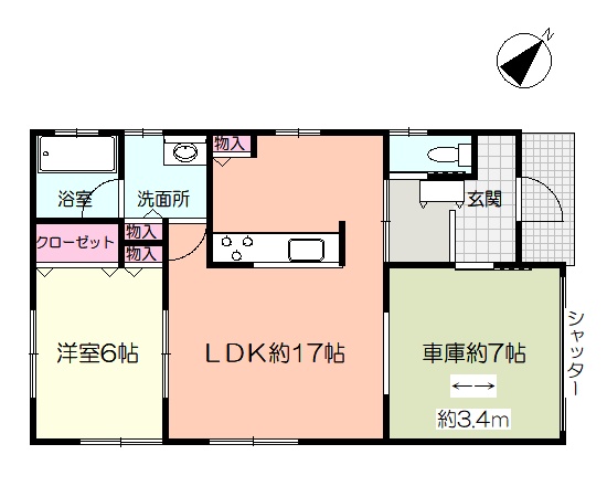 ガレージ付きの平屋建て住宅で、生活もしやすいです。