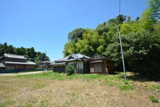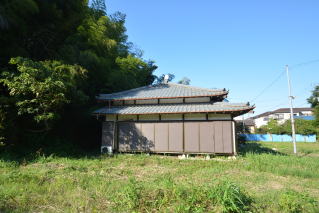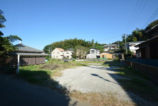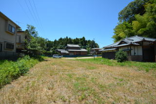 建物前のスペース 右手には住宅が建ち並んでいます。菜園スペースは十分にあります。