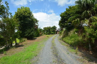 左が南側道路、中央が物件への進入路です。
