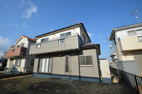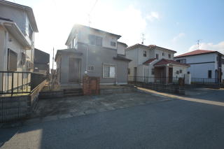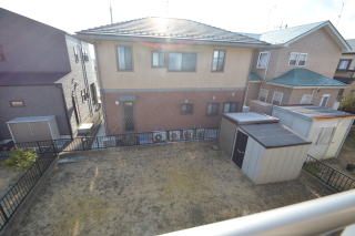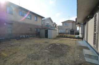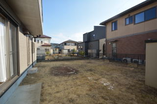 逆方向から。広めのお庭で、ウッドデッキを新設