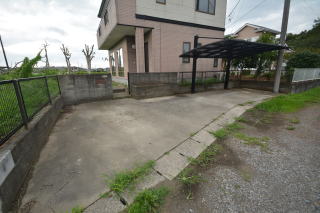 駐車スペースは、車2台分。間口はとても広く、一部は屋根付きのカーポートになっています。
