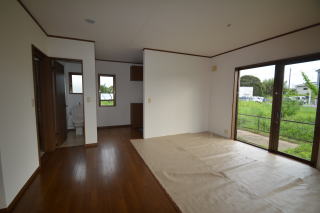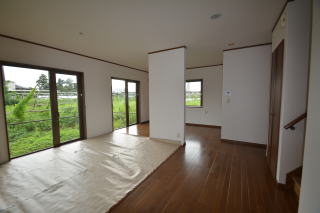 LDK21.7帖。シートが被せてある部分は、畳敷きになっています。