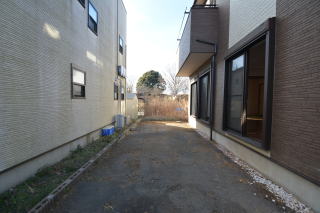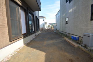 逆方向から。お庭のお手入れ道具や、ベビーカーなど大型の荷物の収納が出来そうなスペースもあります。