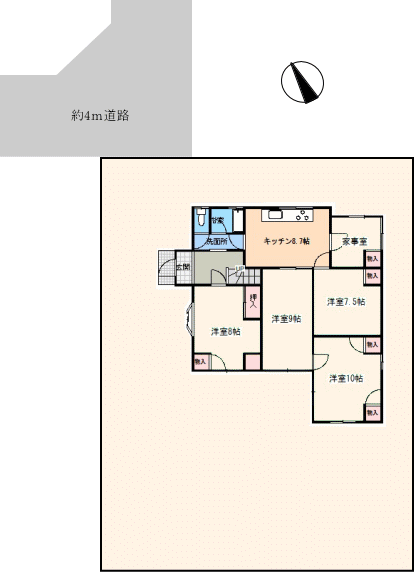 北・約4m道路。周辺に生活施設が充実していて、生活に便利な環境です。