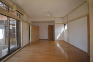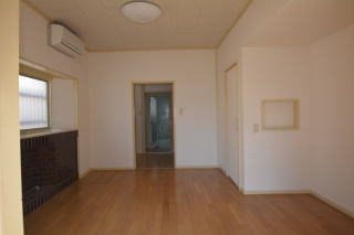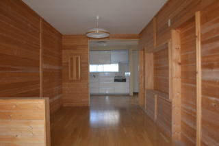 洋室9帖。 木の温もりが感じられる、お部屋ですね。奥がキッチンで、続き間になっています。