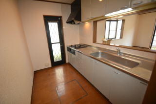 キッチンスペース。 キッチン対面式でリビングが見渡せます。 さらに勝手口付き。