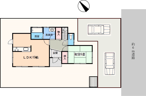 駐車スペースは車2台分あり、間口が広く停めやすいです。