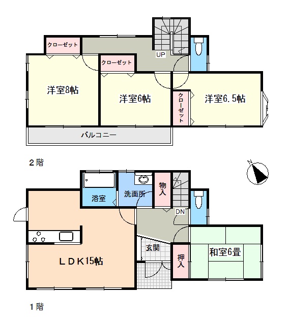 2階・洋室6.5帖 どのお部屋も収納が充実しています。