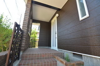 玄関は壁に囲まれ、安心感のある造りに。