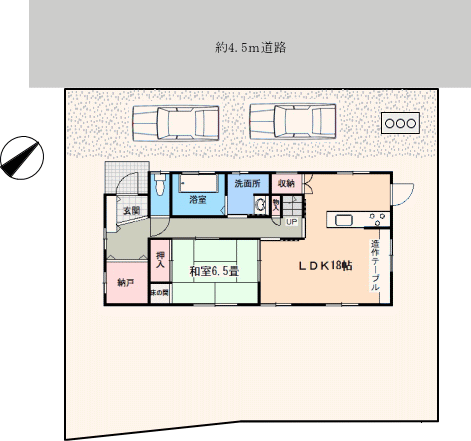 北西側から。道路側は窓が少なく、人通りも気になりませんね。