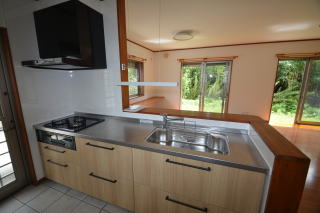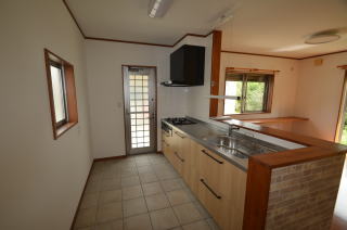 キッチンは上部に棚がなく、とてもすっきりしています。