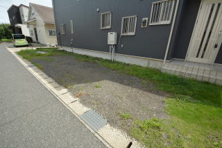 駐車スペースは砂利が敷かれ、間口も広めで使いやすい。