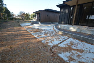 玄関前には広いテラスがあります。平家が2棟で民泊利用もいいかも知れませんね!