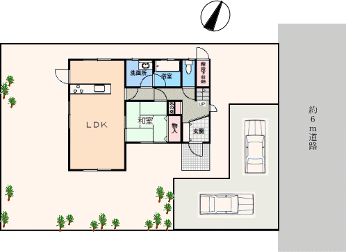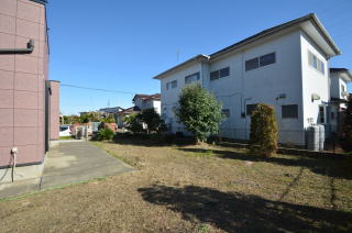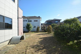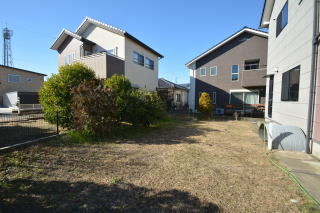 逆方向から。庭木が数本あるのみで、好きなようにアレンジ出来そうですね。