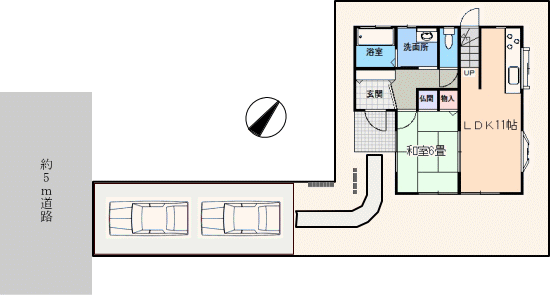 逆方向から。車2台分のスペースは、嬉しいですね。