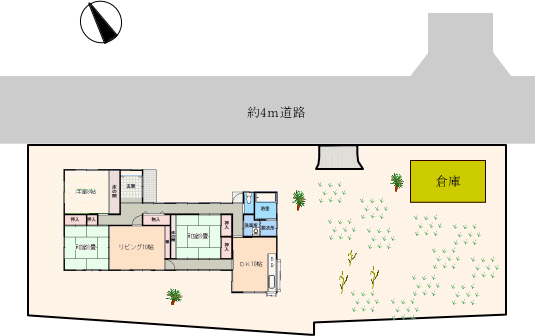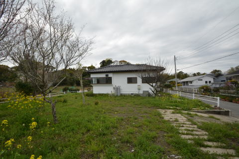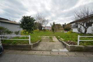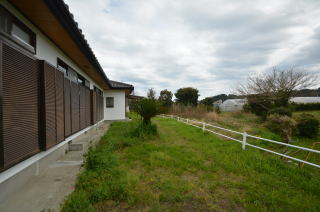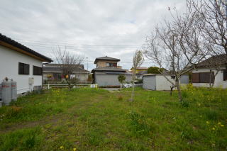 入口側を見る。東南側には広くお庭が広がり、数台の駐車スペースも造れそうです。