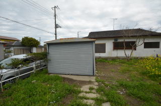入口入り左に見ると倉庫がありました。お庭のお手入れ道具の収納などにもちょうど良いですね。