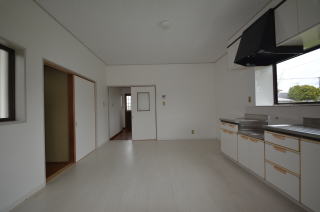 ダイニングキッチン10帖。白が基調となっていて、明るく気持ちよく食事が出来そうです。