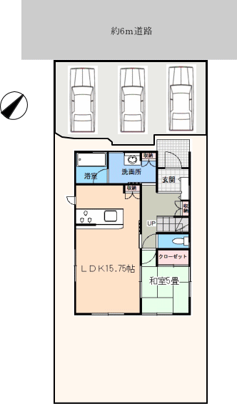 北西・約6m道路