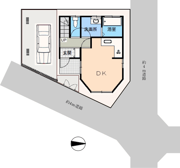 玄関脇の駐車スペース。 愛車も日差しから守れそうですね。