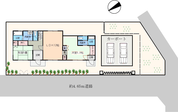 物件は角地に建ち、開放感も確保されています。