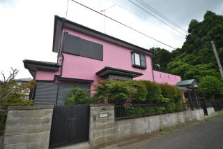 北西側・道路から。道路側には生け垣があり、室内の様子はわかりにくくなっています。