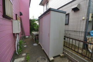 建物裏には物置が。お庭のお手入れ道具の収納にちょうど良いですね。