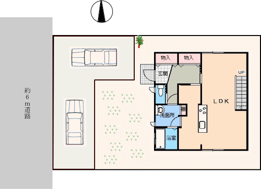 西側・約6m道路。 ビッグホップガーデンモールまで約1.4km、コストコホールセールまで約4.7kmと生活は便利です。