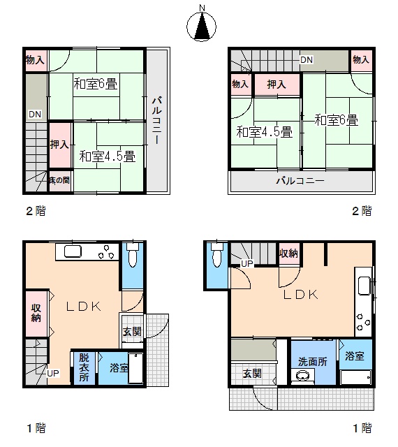 北側から。2棟とも1階部分は令和6年6月にリフォームされ、大変綺麗になっています。