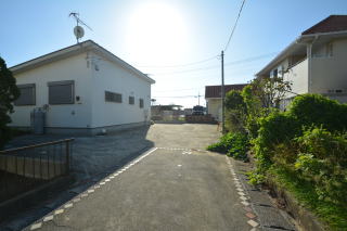 南西側・玄関周辺。隣家とは適度に離れていてとても開放的。