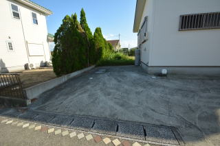 北西側は広く舗装され、駐車スペースとして使えます。