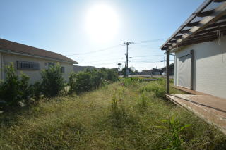 南東側。敷地を囲うように、庭木が数本あるのみでこれからお庭造りが楽しめそうです。