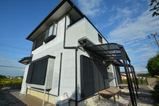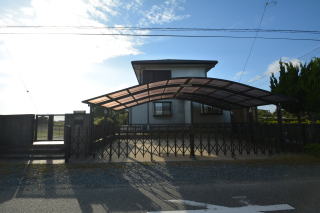 東側。屋根付きのカーポートは、車3台分。