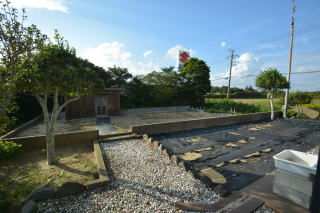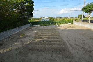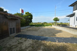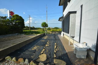 建物左(西側)のスペース。 雑草除けにシートが敷かれています!