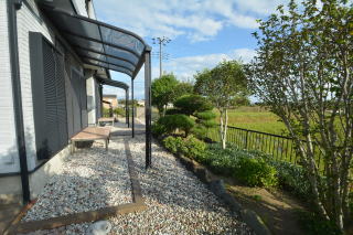 西側に行く足元には、砂利が敷いてあります。防犯用にもなりますね!