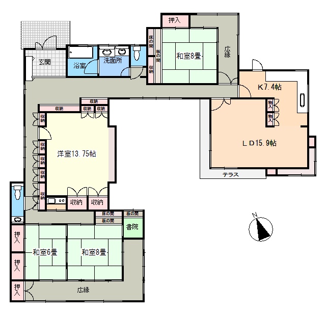 大型の4LDK、平屋建て住宅!